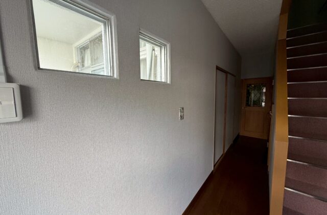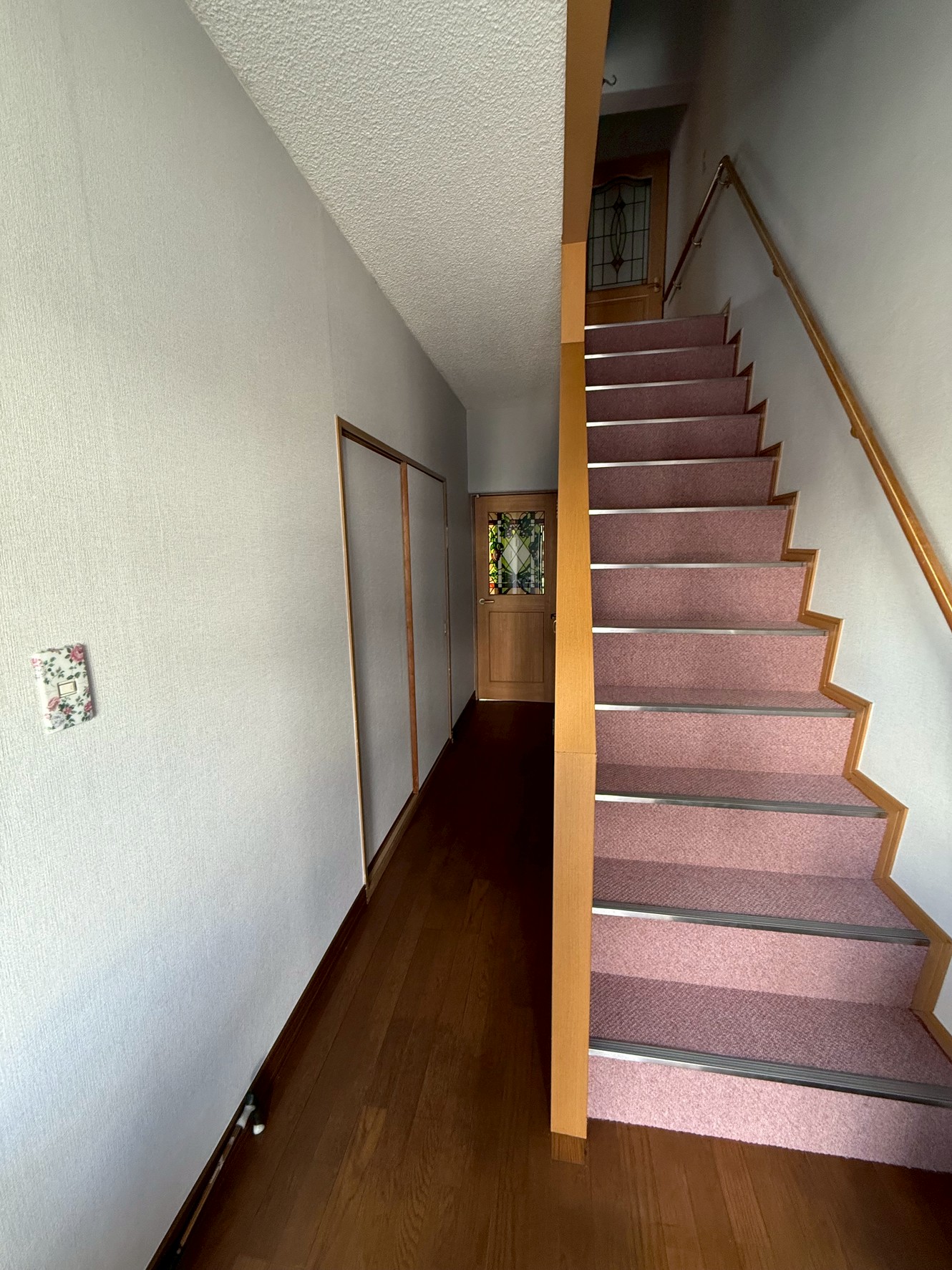 階段の床にあるカーペットもクロスも経年劣化によりお色味がくすんでしまっていましたが、新しくしたことでお部屋がパッと明るい印象になりました。