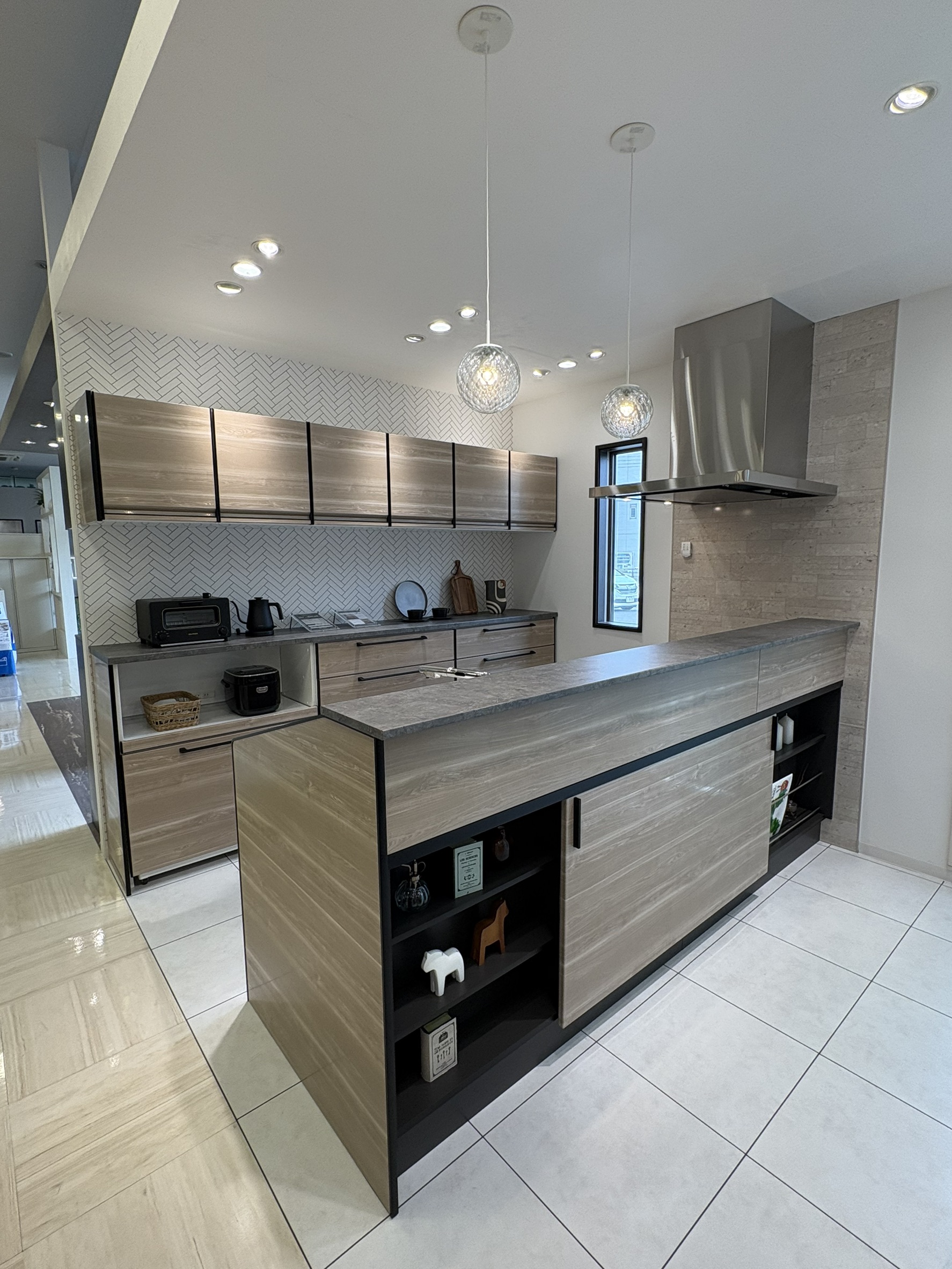 お掃除のしやすさはもちろん、マグネット収納で自由にアレンジができ、凹みや傷がつかない強さもあり、とても人気があります。機能性を考え抜かれた工夫がされていてオシャレだけど使いやすい、みせる収納が活かされたキッチンとなっていました。