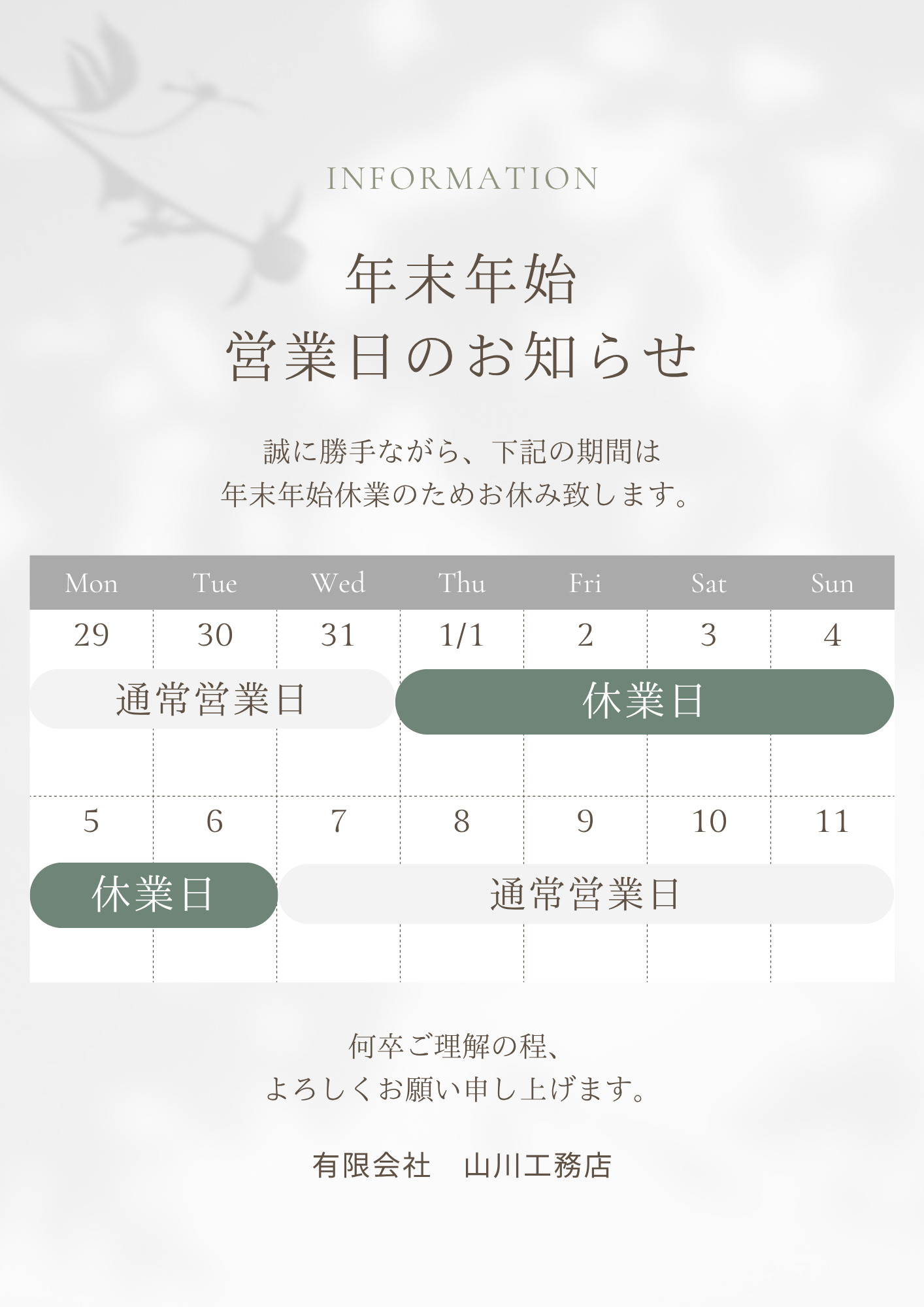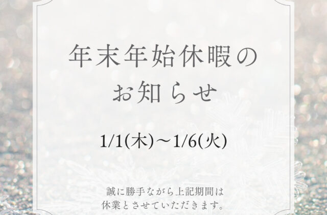 誠に勝手ながら、下記の期間を年末年始の休業とさせていただきます。
